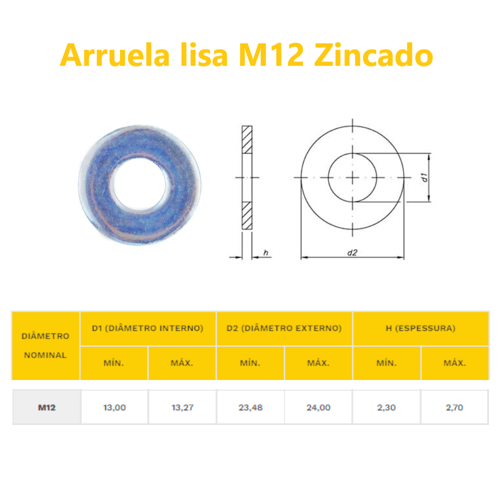 As medidas da Arruela Lisa M12 tem uma Pequena Variação conforme a sua Fabricação.