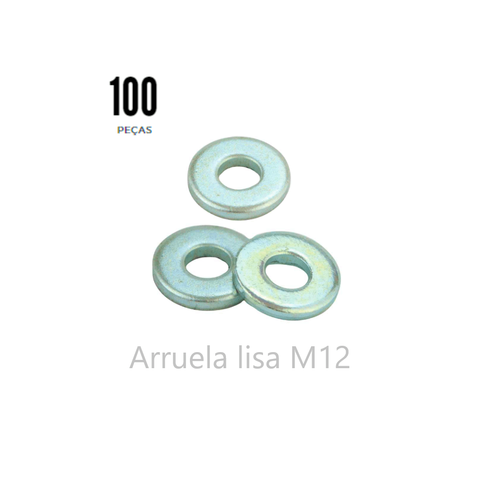 ARRUELA M12 – LISA e ZINCADA – 100 Unidades. A Arruela é um Elemento de Fixação na União de partes e peças.
