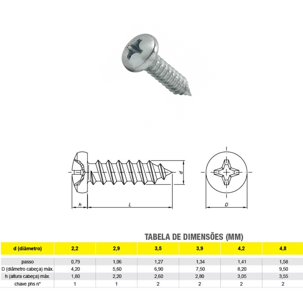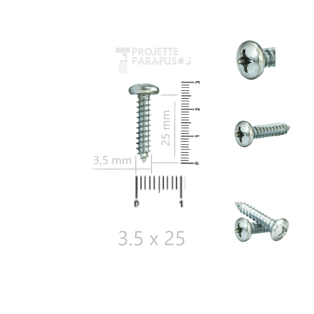 Parafuso Auto-Atarraxante 3.5 x 25 Milímetros com Cabeça Panela e Aperto com Chave Phillips Nº 2.