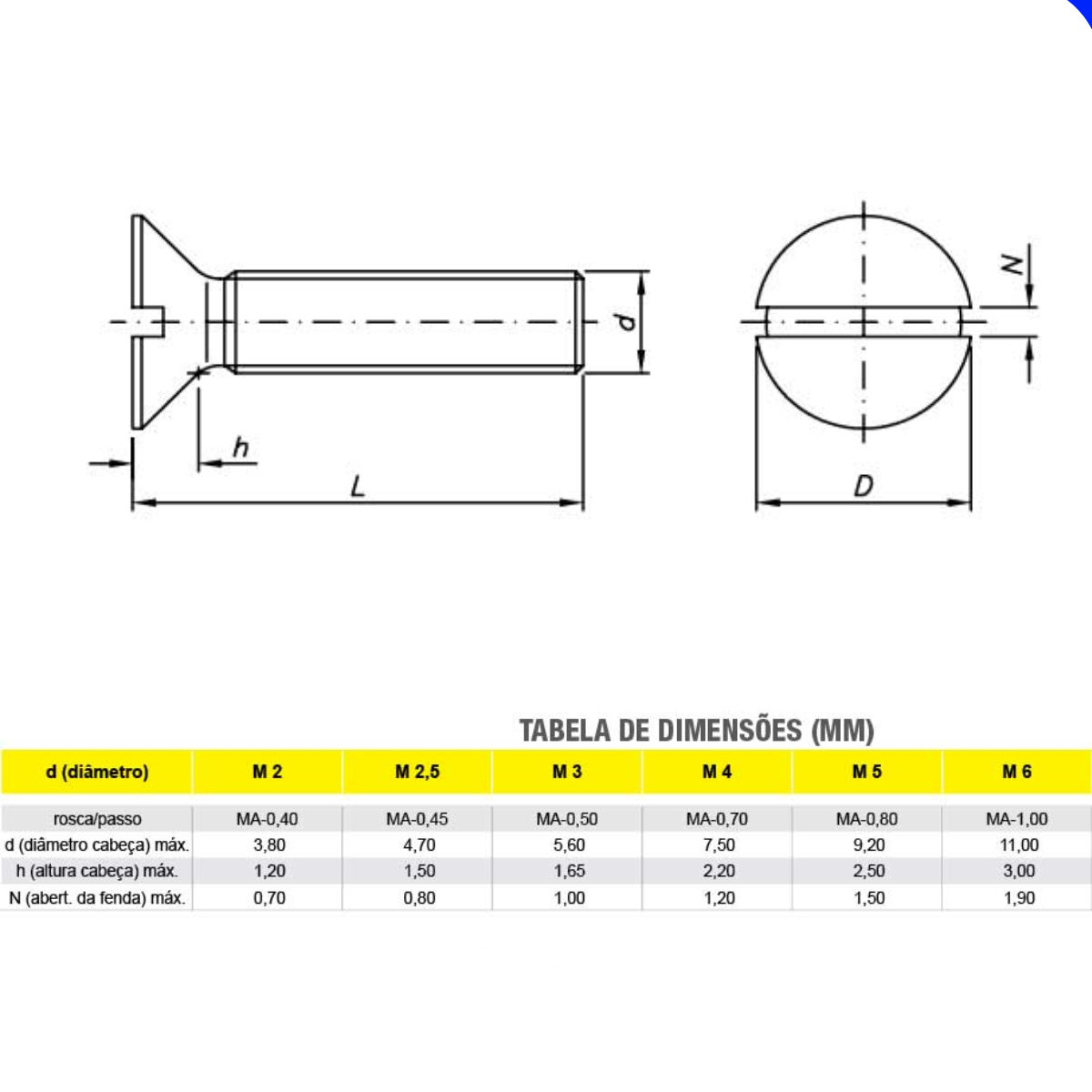 • DIMENSÕES: DIN 963 (DIN EN ISO 2009)