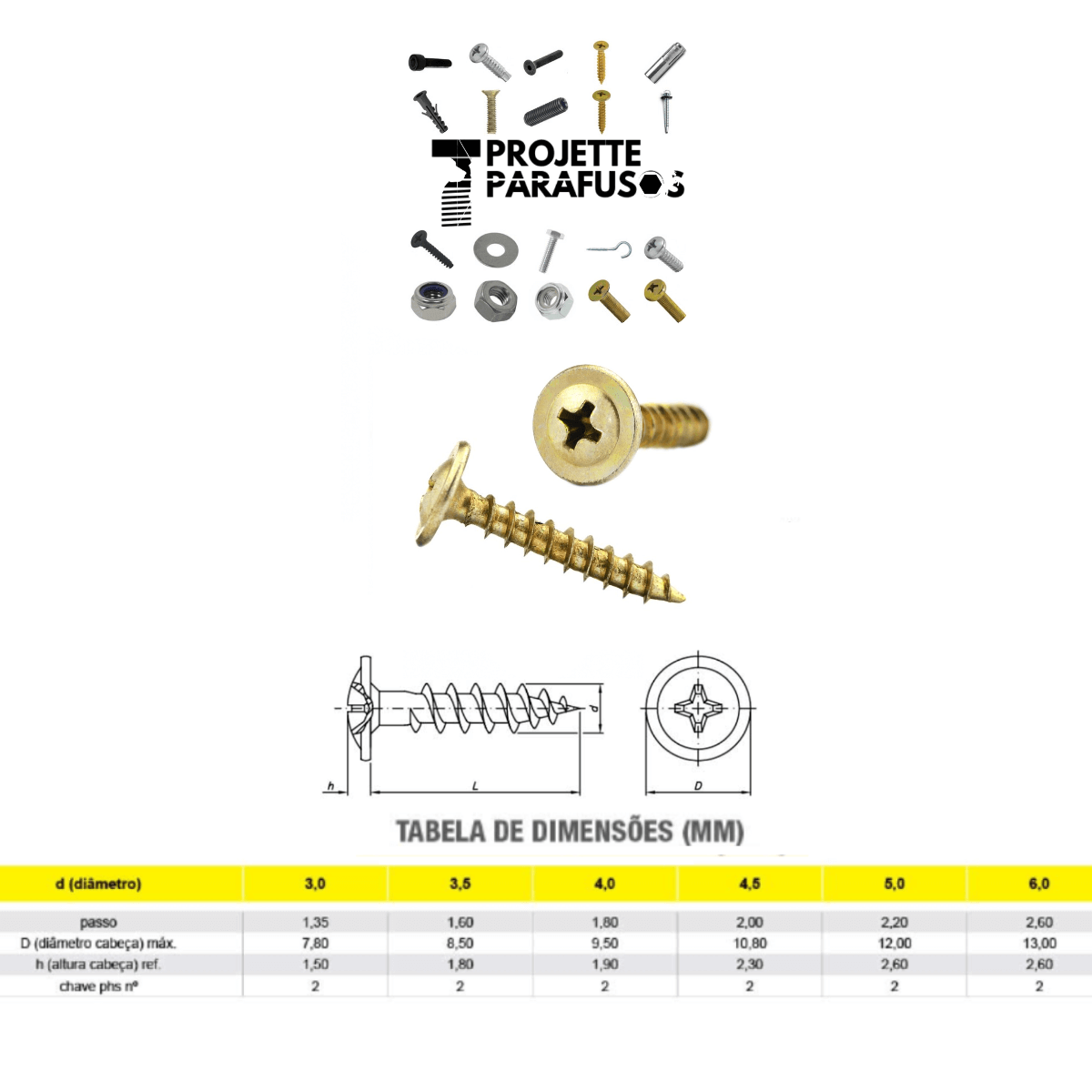 Parafuso Chipboard Flangeado 4.0 x 14 (mm)