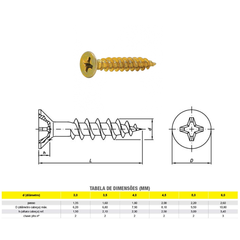 Parafuso Chipboard Phillips 3.5 X 12 mm – Pacote com 100 Peças