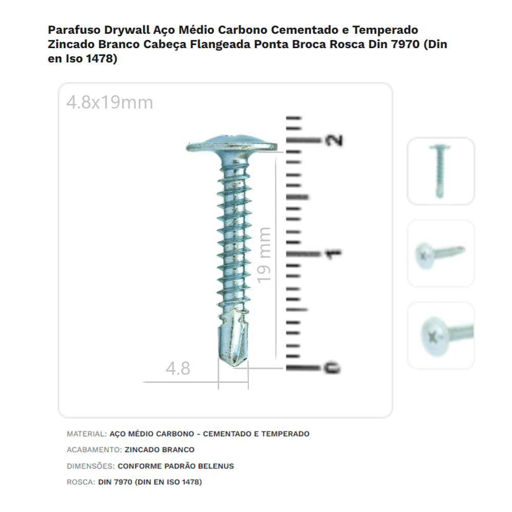 Parafuso Drywall Flangeado 4.8 X 19 mm