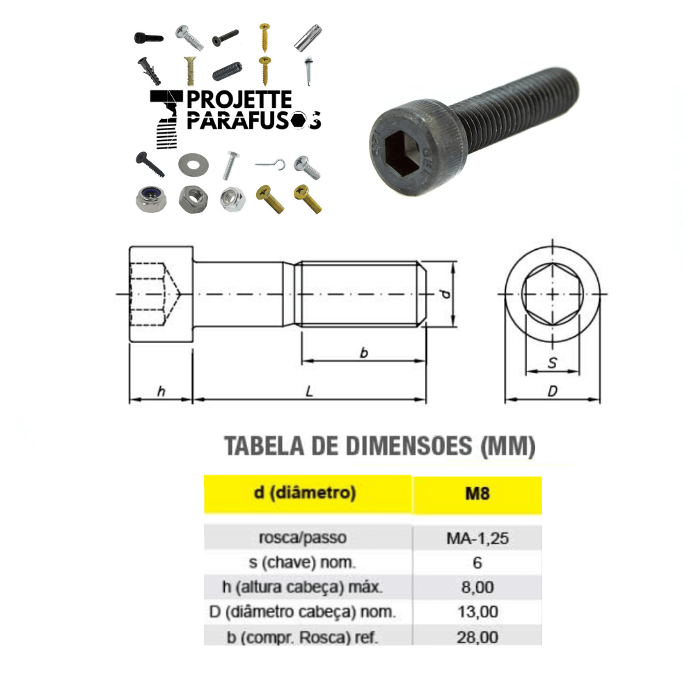 Especificações Técnicas Parafuso Allen M8 x 16 mm