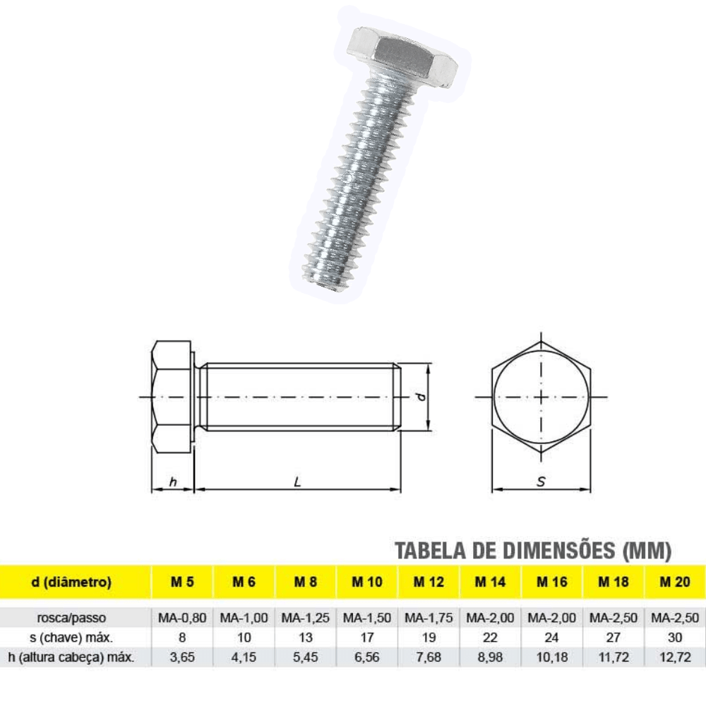 Acabamento do parafuso sextavado (mm): Zincado