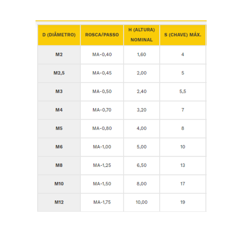 - Material da porca: Aço carbono 1010/1020