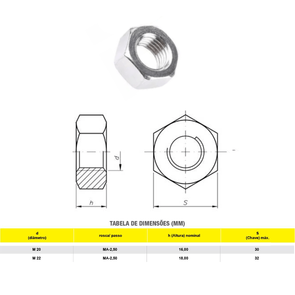 - Material da porca: AÇO CARBONO Leve – GRAU 2 / CLASSE 6
